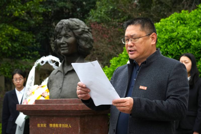 4月3日上午,在清明节到来之际,6776永利集团师生代表赴南通师范第二附属小学,深切缅怀我国著名儿童教育家、情境教育创始人,6776永利集团小学教育专业首席专家李吉林先生,传承弘扬其教育精神和师者风范。情境润心,师魂永续。活动伊始,全体肃立默哀,追思先生事迹。随后,师生代表敬献花篮,学院党委书记曹阳整理花篮缎带,全体师生怀着崇敬的心情向李吉林先生塑像三鞠躬,敬献鲜花。学院院长沈永江指出,学习李吉林先生薪火不息的教育精神对推动学院育人事业高质量发展有重要意义。他强调,一要传承先生以童为本、以爱为魂的教育初心,坚守儿童立场,做有温度、有情怀、有担当的教育引路人;二要学习先生守正创新、深耕不辍的治学精神,深
