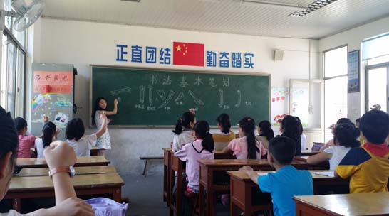 2015年7月10日,yl6776永利集团书法研习社“翰墨书香 书法传情”暑期社会实践小分队成员前往雁滨小学并教授书法的基本笔划。