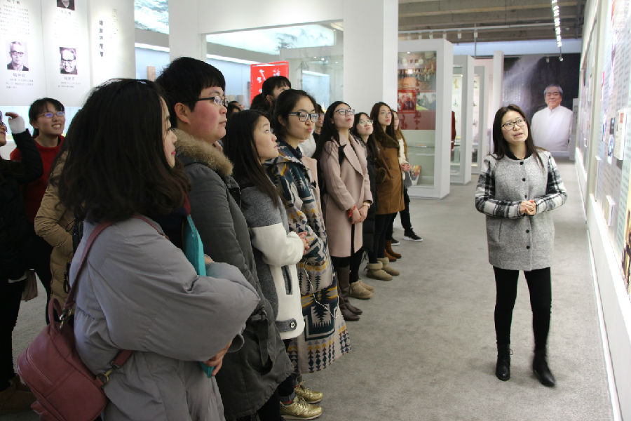 3月14日上午,我院组织2015级研究生参观范曾艺术馆。上午9点,同学们跟随馆内讲解员先后参观了范曾艺术成就展馆、范氏诗文世家展馆及范曾先生作品陈列展馆,对范曾先生的生平、主要事迹、家世情况有了大致了解。在范曾先生作品陈列馆内,讲解员对馆内的作品一一进行介绍,同学们在赞叹范先生卓越的创作技巧的同时,更是被其创作理念深深折服。“我最喜欢里面的《圣者驯虎图》,画里的老者面容慈祥,小孩天真可爱,就连他们身边的老虎也是萌萌的,我想范先生想表达的就是人与自然和谐相处的哲理吧。”参观的一位同学如是说。