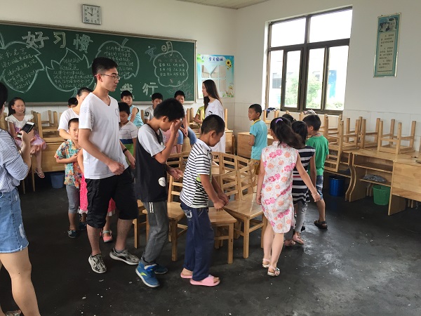 仪式伊始,活动负责人黎艳艳致开营动员辞。致辞过后,各教员做自我介绍。启动仪式在负责人宣布夏令营正式开营后结束。仪式结束后,教员李豆豆和各年级小朋友们一起进行了梦想歌儿大家唱《隐形的翅膀》的学习并交流了各自的梦想。十点下课后,各教员和服务团成员与小朋友们一起进行了“抢凳子”和“一二三木头人”的游戏,小朋友聪明活泼,整场活动充满欢笑声与呼喊声,气氛异常活跃。十点半到十一点半由教员宗亚莉主讲的“信封+变废为宝”手工课,小朋友们开动脑筋,展开想象,积极配合并将对父母和教师等感恩之情写进信中,课程得以顺利进行。