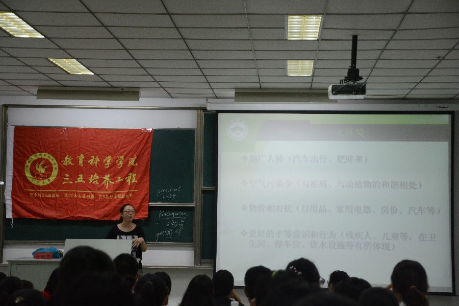本次讲座旨在通过老师所体验的不同生活方式及文化差异,让学生们反思自己的生活、学习、思维方式。同时也让同学们明白语言和知识学习是次要的,开阔视野,感受和理解差异是重要的。