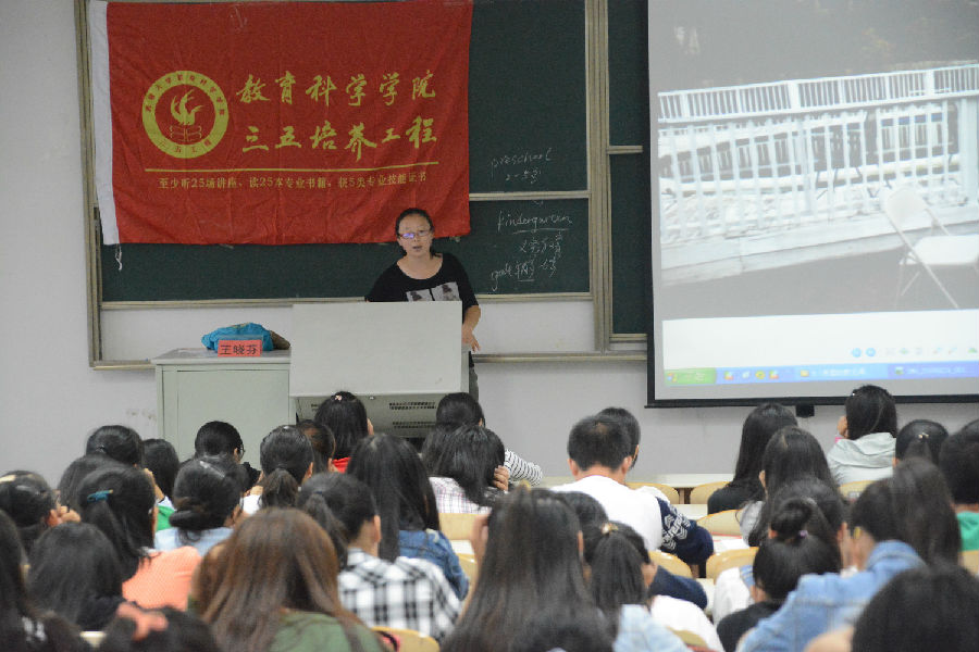 9月28日下午2点,由6776永利集团组织的三五讲座在8号楼106教室成功举办。本次讲座主题为《美国幼教见闻》,由教科院学前教育系王晓芬老师主讲,120余名同学参加本次活动。