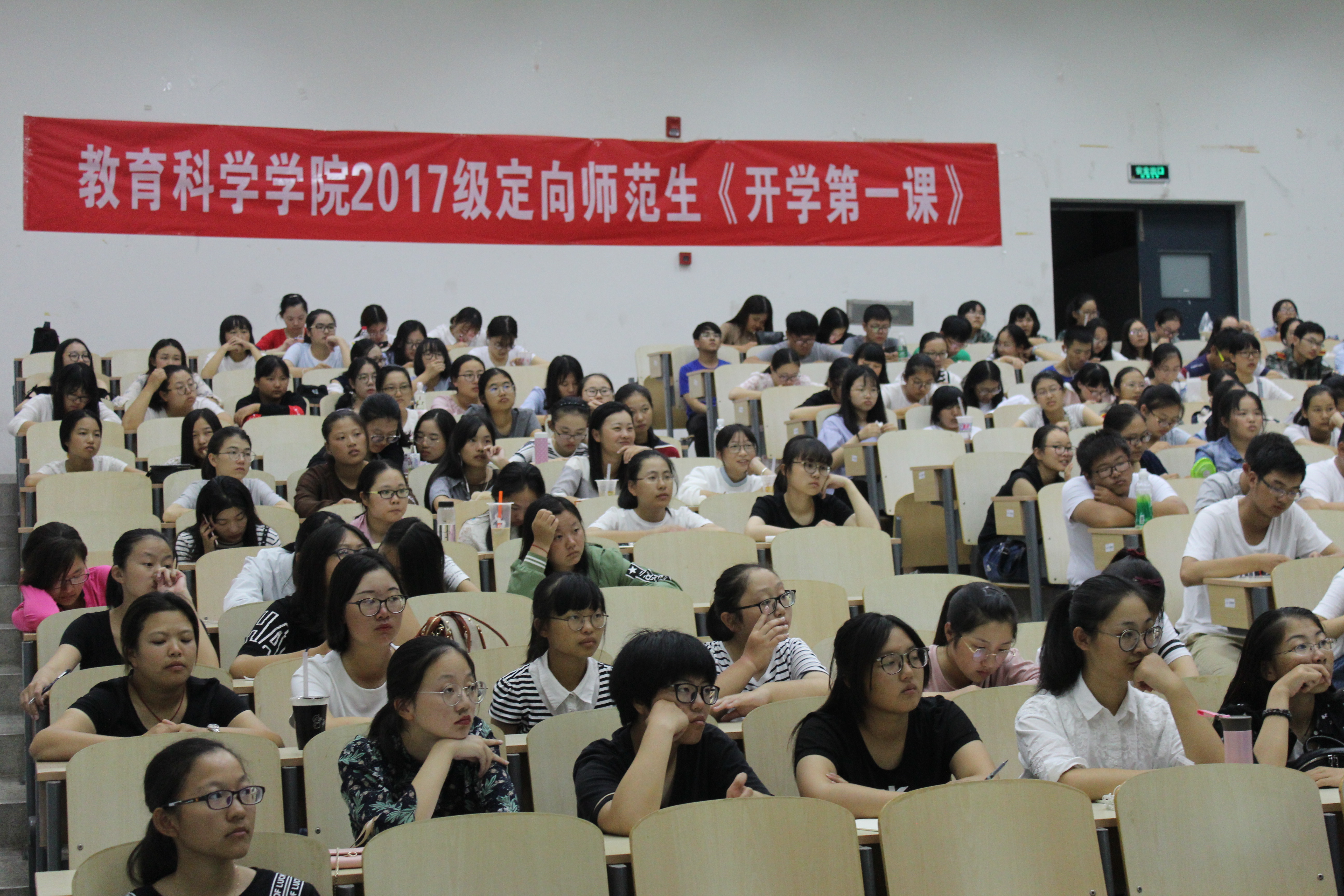 2017年9月22日晚,6776永利集团17级辅导员陈淑慧老师组织学院2017级全体定向师范生观看了由江苏省教育厅主办、江苏教育频道承办的“做好学生引路人——庆祝2017年教师节大型主题活动”暨《开学第一课》。