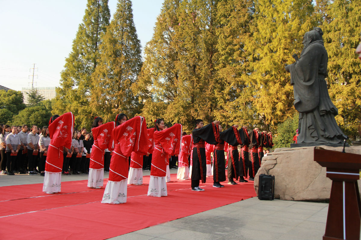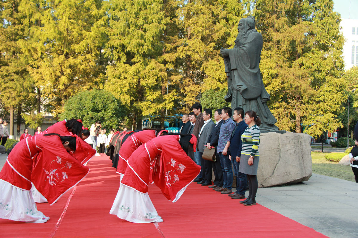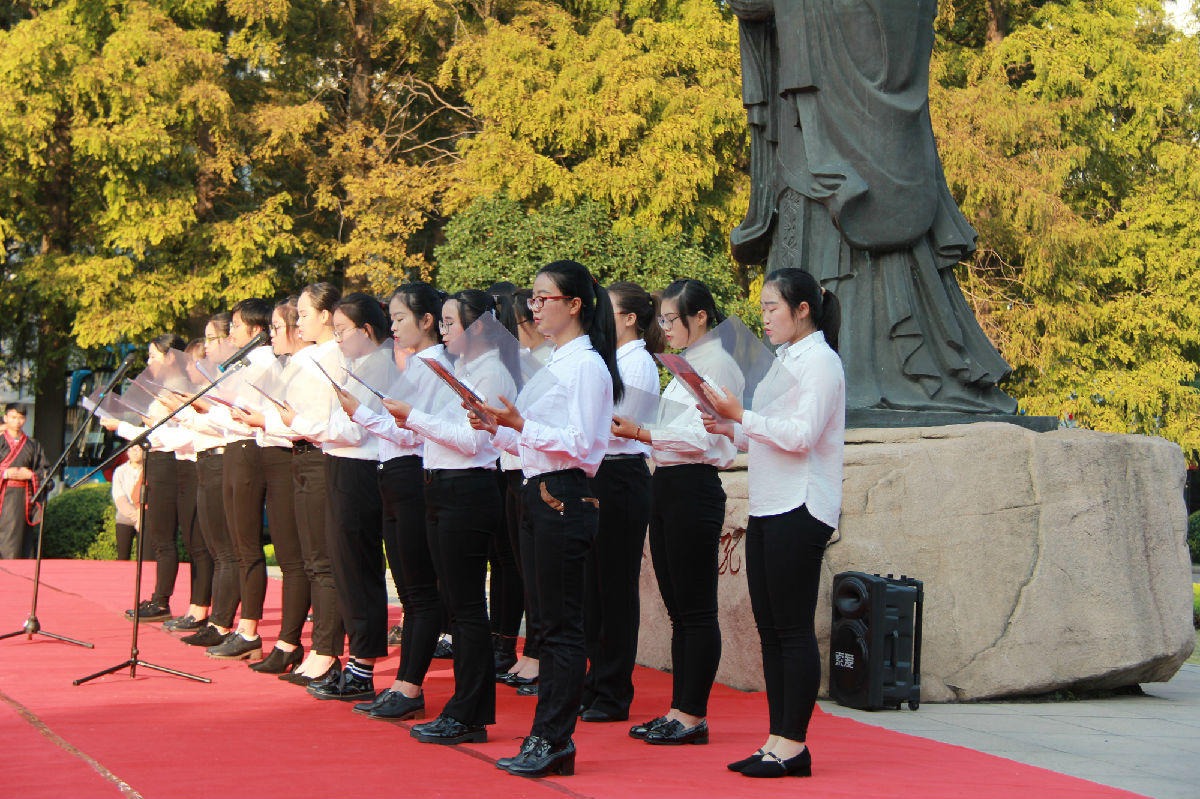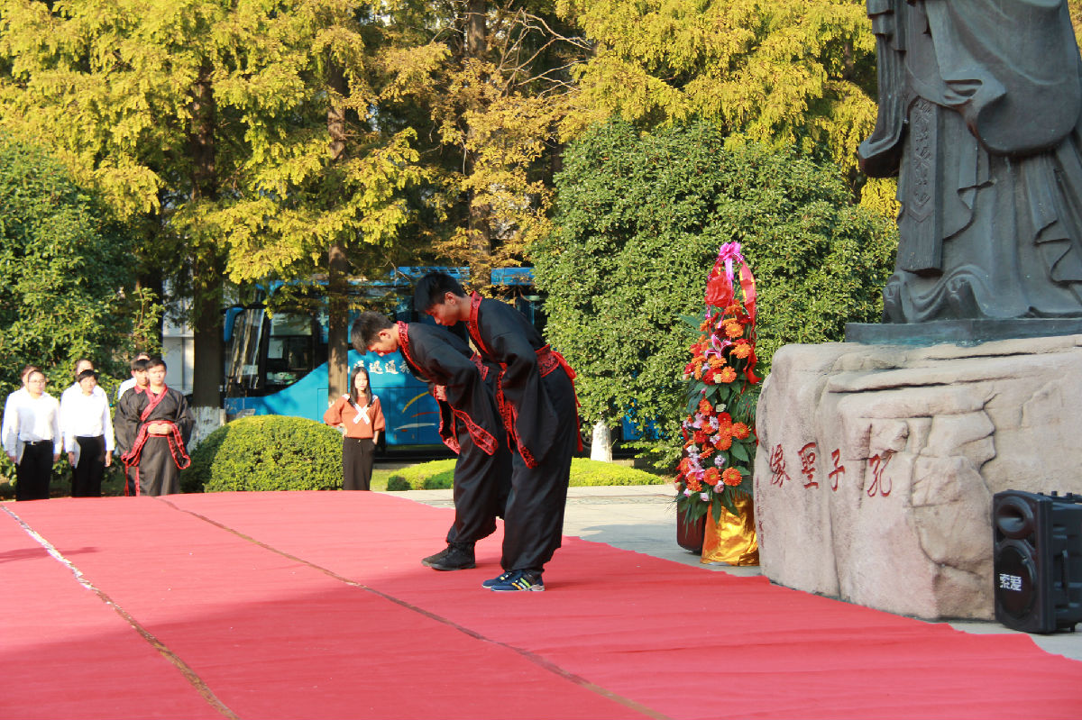 11月1日下午,我院在毓秀林荫的钟秀校区孔子园隆重举行以“仰万世师表,效至圣先师”为主题的首届师范生祭孔仪式。院长邓宏宝、党总支书记陈炜和学院领导徐红波、沈永江、姜永杰、部分教师代表、教科院2017级200余名师范生出席仪式。