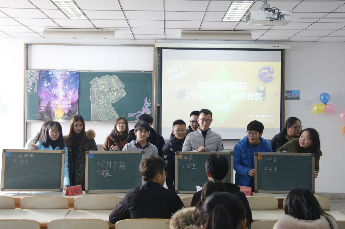 2017年12月20日,在yl6776永利集团永利集团处以及校学生自我管理委员会的帮助下,6776永利集团在8号楼309举办了主题为“学知识手册,习学生风范”的《学生手册》知识竞赛决赛辅导员陈淑慧、赵敬龙以及其他近200名同学参加了本次竞赛