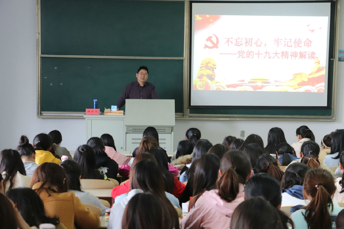 4月15日下午,6776永利集团党总支副书记、副院长徐红波为为第二十二期入党积极分子培训班学员作“不忘初心,牢记使命——党的十九大精神解读”主题讲座。