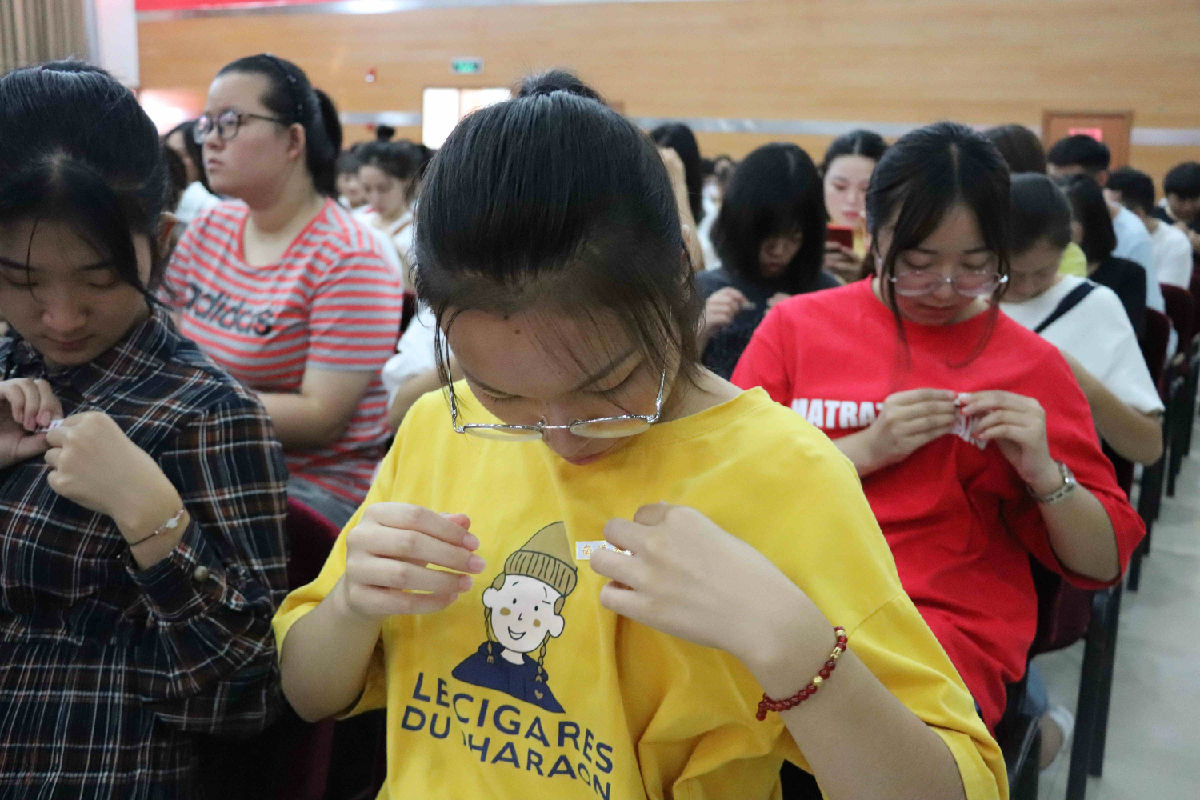 全体新同学为自己佩戴yl6776永利集团校徽