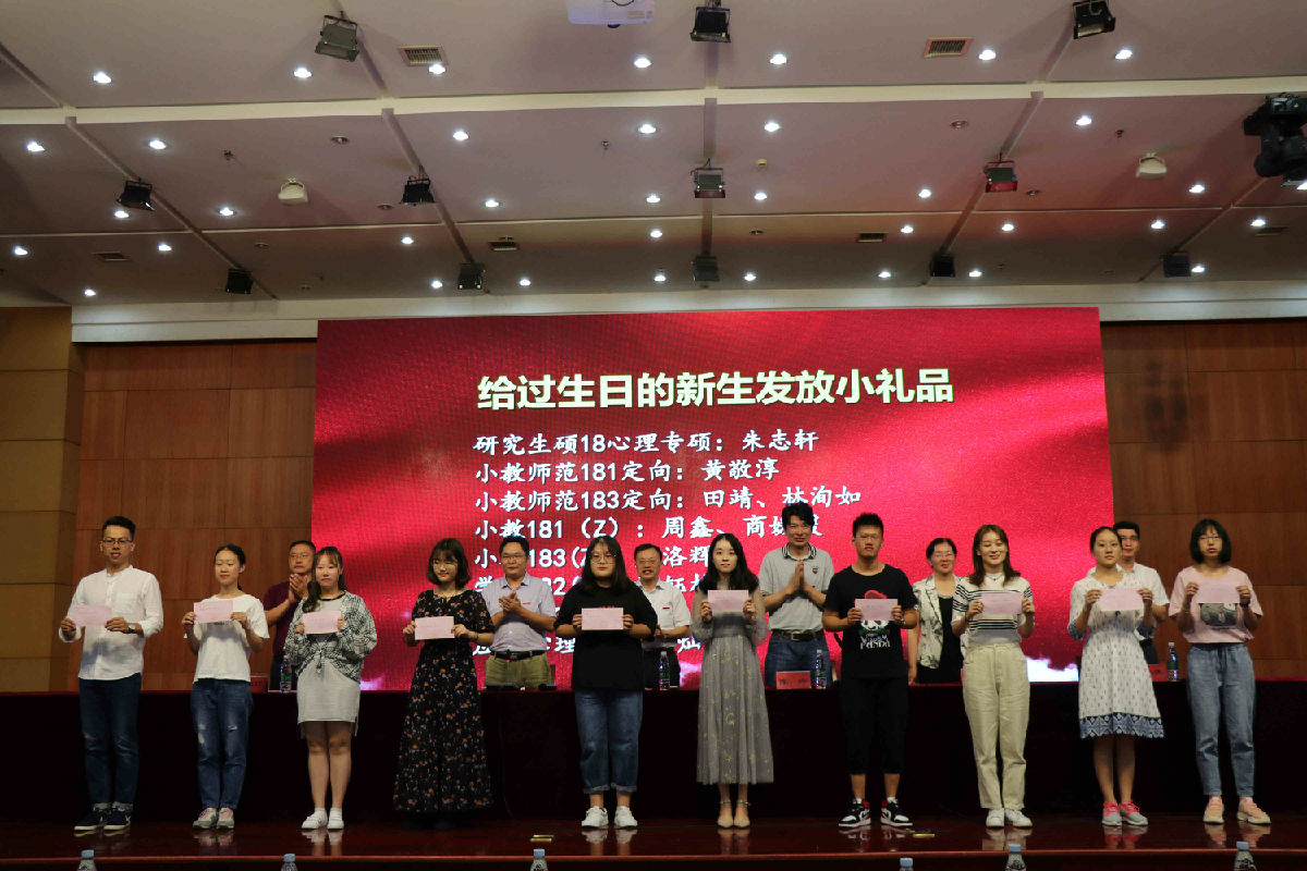典礼开始前,全体师生观看了学院为2018级新同学精心制作的暖场视频。新生大数据分析、学院办学特色介绍、新生报到场景、学院领导和老师的温馨祝福,营造了良好的典礼氛围。入学典礼上,学院还特意为开学一周内过生日的十名同学送上了精心准备的生日礼物,让新生们感受到来自教科院大家庭的温暖。入学典礼的最后,全体新同学为自己佩戴上yl6776永利集团校徽,宣告自己成为yl6776永利集团的一员。