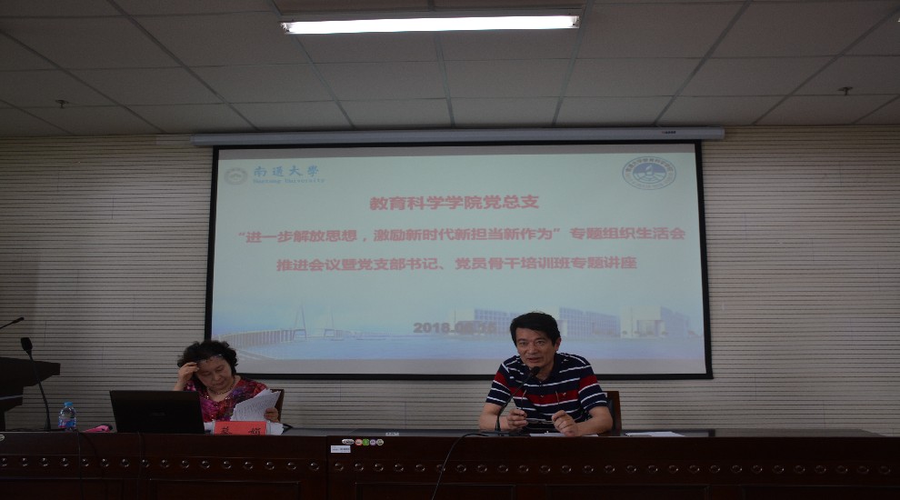 学院党总支书记陈炜带领大家学习了中共中央《关于进一步激励广大干部新时代新担当新作为的意见》以及江苏省委下发的《江苏省党政干部鼓励激励办法》、《江苏省进一步健全容错纠错机制的办法》、《江苏省推进党政领导干部能上能下办法》等文件精神,并对各个支部专题组织生活会的召开进行了部署。