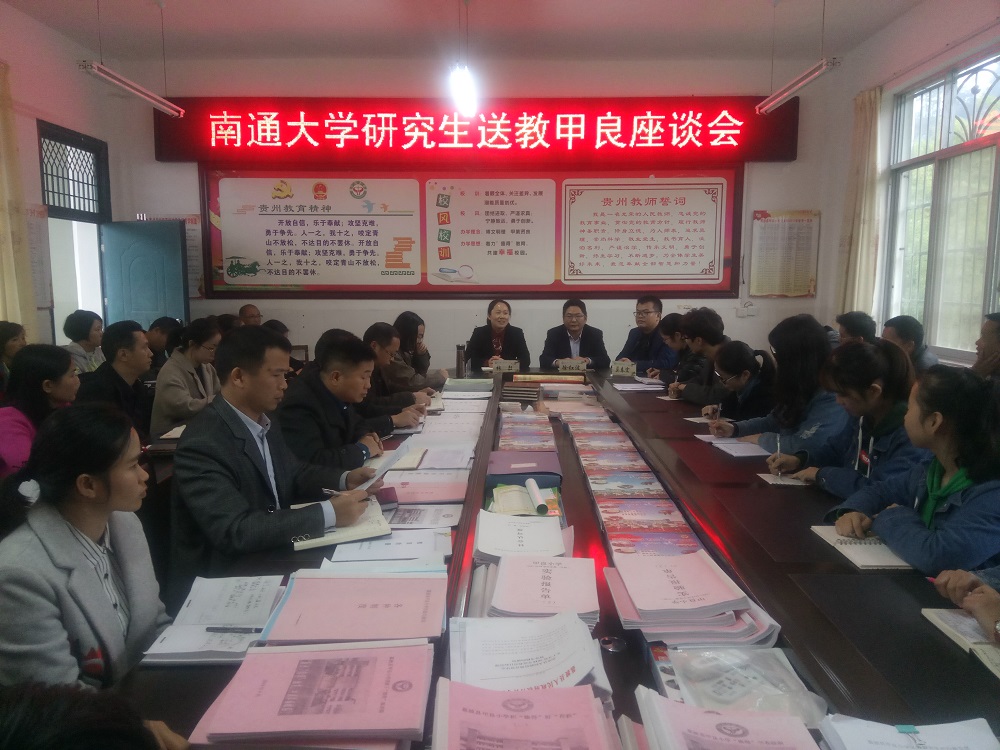 为欢送首批支教学生,甲良中心学校校长莫春宏主持召开“yl6776永利集团研究生送教甲良座谈会”,各支教学校校长在发言中对首批支教学生所做的工作给予高度赞扬。张毅、徐红波代表学校感谢各支教点对支教学生在工作、生活上的关怀帮助,并就进一步深化支教合作提出了一些意见建议。周思雨、董欢等五位第一批支教学生在会上做了顶岗实习总结。