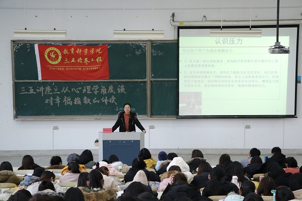 12月12日13:30,6776永利集团于9号教学楼202教室成功举办了以“从心理学角度谈对幸福指数的解读”为主题的三五讲座。本次讲座由校就业中心的邱佩钰老师主讲,教科院280余名学生到场参加。