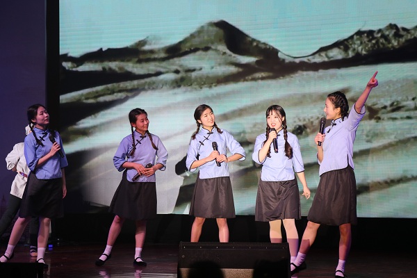 朗诵过程中贯穿着朱伽仪的舞蹈与姜锐的古筝弹奏。悠扬的琴声,曼妙的舞姿,动情的表演,展现了教科院“四一工程”的优秀成果,体现了同学们对祖国四十年来的变化的感慨,对国家实力的赞美,对实现中华民族伟大复兴的满腔热情和动力。