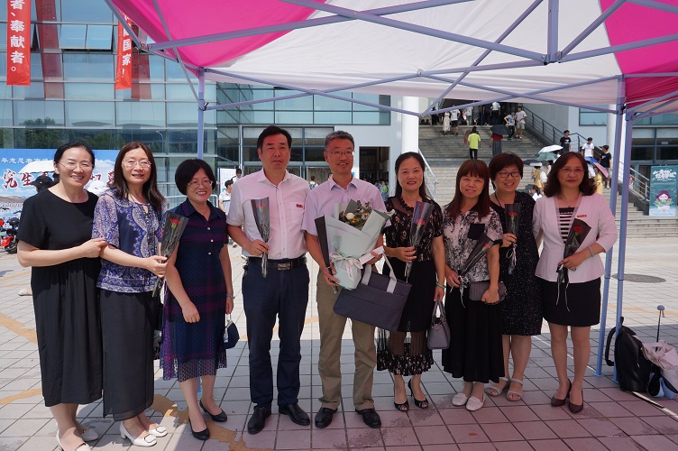 为庆祝第三十五个教师节,6776永利集团学前教育181班全体同学在啬园校区二食堂门口举行了一场以“歌颂教恩,咏唱师情”为主题的校园快闪活动,通过合唱、舞蹈的方式,表达对老师们节日的祝福。校党委书记浦玉忠、校长施卫东、副校长侯文华,校党委常委王卫东、吉明明观看了快闪活动,并与师生合影留念。