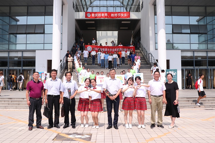 浦玉忠、施卫东、侯文华等校领导到场观看了快闪活动,对参与的师生给予殷切鼓励,并与教科院参加快闪活动的师生亲切合影留念。活动吸引了众多老师和同学驻足观看,大家纷纷拿起手机,拍摄快闪的生动场景。同学们给每位老师都献上一朵美丽的鲜花和节日贺卡,祝福老师们教师节快乐。整个场面温馨而热烈,充满了浓浓的师生情谊。