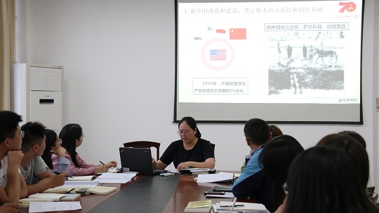 10月12日下午,6776永利集团本科生党支部开展“不忘初心、牢记使命”主题教育活动,支部书记陈淑慧以“70年奋斗历程”为主题为支部党员上课。