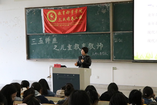 11月20日下午,6776永利集团于9号楼202教室举办以“儿童教育教师”为主题的三五讲座。此次讲座由苗雪红老师主讲,教科院280余名同学到场聆听。