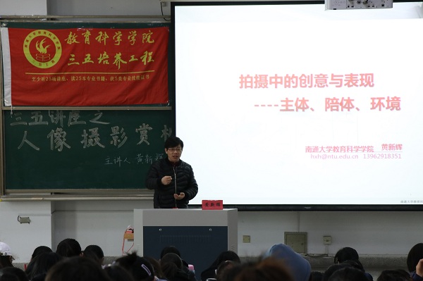 12月4日,6776永利集团于1号教学楼205教室举办以“人像摄影赏析”为主题的三五讲座。此次讲座由黄新辉老师主讲,教科院280余名学生到场聆听。