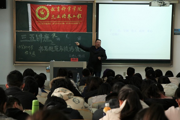 12月4日下午,6776永利集团于8号楼309教室举办以“书写规范与技巧漫谈”为主题的三五讲座。讲座由杨谔老师主讲,教科院280余名学生到场参加。