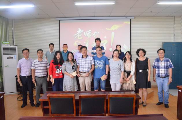 党总支书记陈炜代表学院党政向全体教职工致以节日的问候,宣读了在过去一年里为学院发展付出努力的一批受表彰的教师代表;院长邓宏宝教授对学院领导班子的分工进行了通报,布置了下半年的主要工作,并进一步强调了教职工请假制度。全体院领导向今年整生日的教师送上了生日蛋糕。