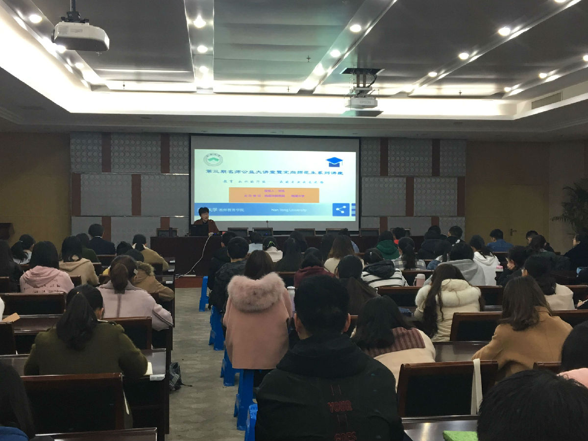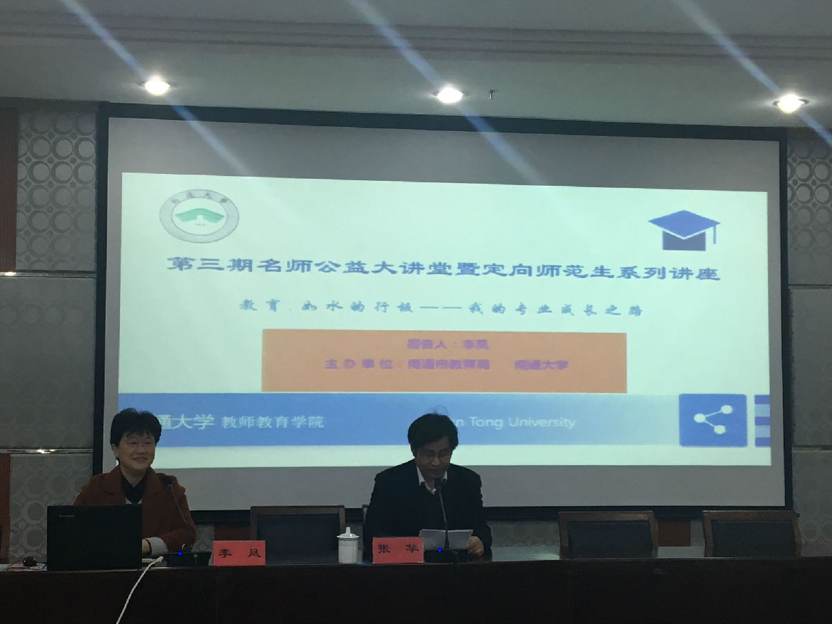 3月14日下午,南通市教育局和我校联合举办了第三期、第四期名师公益大讲堂暨乡村教师定向师范生系列讲座活动,全校532名定向师范生听取了报告。两场报告分别由市教育局人事师资处张华处长和周淑平副处长主持。