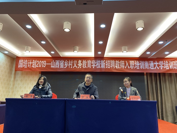 12月17日,“国培2019”——山西省乡村小学英语教师yl6776永利集团培训班在南通丽景大酒店会议厅开班。6776永利集团党总支书记陈炜、乡宁县教科技局招生办主任刘玉泽、侯马市教育科技局师训股王玉林副股长以及学员代表周金霞及90余名山西省乡村小学英语教师出席开班仪式。