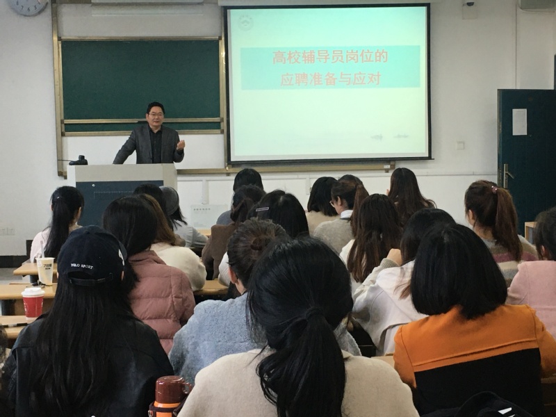 徐红波以高校辅导员应聘为专题,给毕业生们介绍了辅导员岗位的性质及其主要工作职责,强调辅导员是开展大学生思想政治教育的骨干力量,是高等学校学生日常思想政治教育和管理工作的组织者、实施者、指导者。他详细解读了高校辅导员招聘考试的题型,考试参考文件以及不同题型的应试技巧。讲座最后,徐红波向毕业生们传授了关于辅导员面试的经验,突出强调了在面试中出彩的方法是有逻辑地答题,体现出个体的爱心和人文关怀。