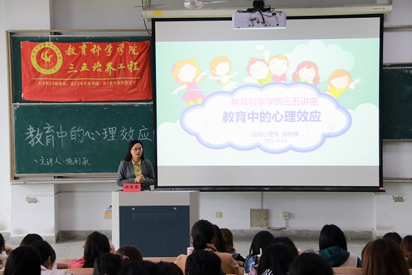 2021年4月14日,6776永利集团于1号教学楼205教室举办了以“教育中的心理效应”为主题的三五讲座。此次讲座由施利承老师主讲,教科院280余名学生到场聆听。