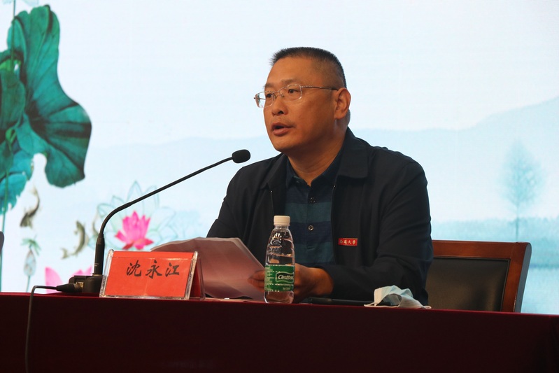 沈永江致欢迎词,他从专业构成、师资力量、培养方案等方面介绍了学院的基本情况,鼓励新同学在新的环境中开拓创新,学有所成。