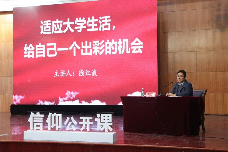 10月21日上午,我院于大学生活动中心举办了以“适应大学生活,给自己一个出彩的机会”为主题的信仰公开课。公开课由我院党委副书记兼副院长徐红波主持,我院2021级研究生及本科生参加了此次公开课。