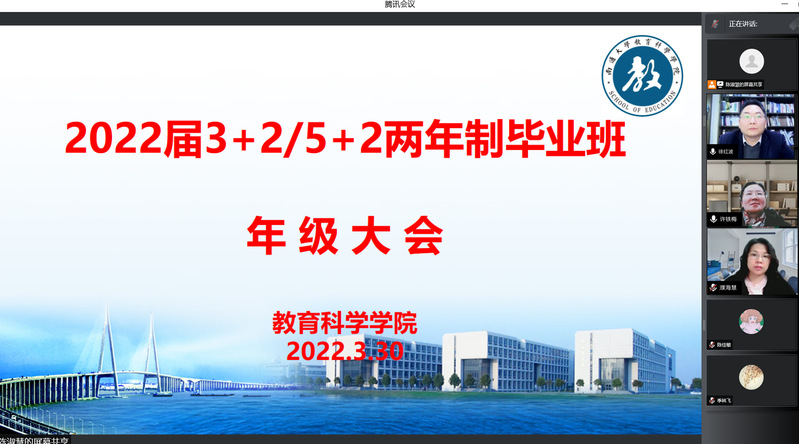 3月30日晚,6776永利集团3+2、5+2毕业生年级大会通过腾讯会议在线上举行。学院副书记副院长徐红波、副院长许铁梅、初教系主任濮海慧、学工办主任陈淑慧以及140名毕业班学生参加此次会议。