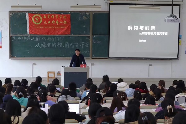 11月16日下午,我院在九号楼202教室举办了以解构与创新:从媒介的视角看元宇宙为主题的三五讲座。讲座由杨晓新老师主讲,我院260名同学参加了讲座。