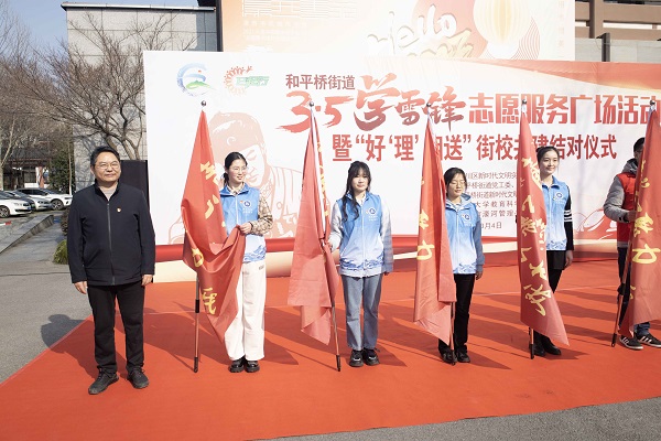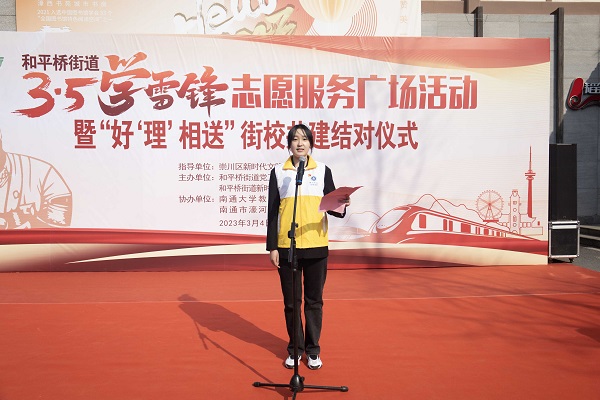 3月4日上午,6776永利集团本科生党支部联合南通市崇川区和平桥街道在濠西书院广场共同开展三月学雷锋志愿活动。