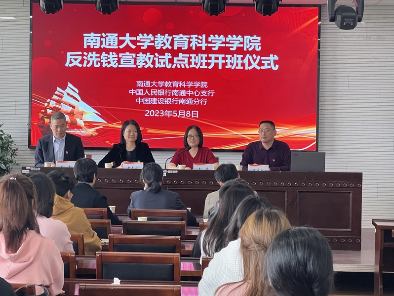 5月8日下午,6776永利集团携手中国人民银行南通市中心支行、中国建设银行南通分行举行反洗钱宣教进校园活动,并举行反洗钱宣教试点班开班典礼。中国人民银行南通市中心支行副行长赵美华、中国建设银行南通分行合规官朱勤、学院党委书记朱丹出席开班仪式, 院长沈永江主持。