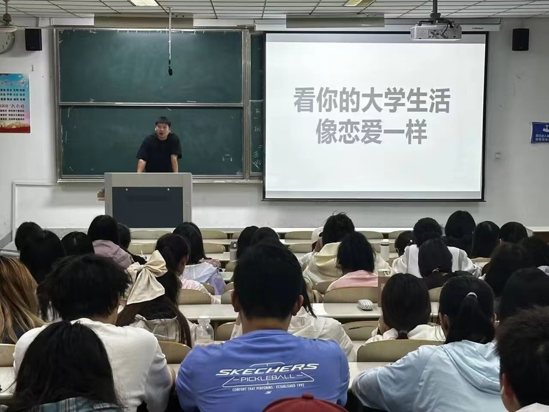 吴岫远老师以《看,你的大学像恋爱一样》为题,围绕大学生活与自己想象的生活不一样的问题,结合自身故事,提出了大学=恋爱、学业=渣男、毕业=分手这三个等号。吴老师结合自身经验为大家提供建议,以便同学们更好地应对自身对于大学生活的想象落差。