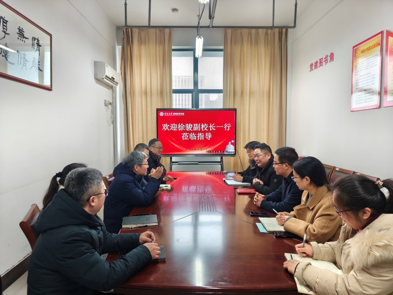 2月23日,开学前一天,我校副校长徐骏一行5人来我院开展开学前工作巡视,并与我院相关部门负责人进行了座谈交流。此次巡视旨在全面了解学院开学准备工作情况,确保新学期各项工作顺利开展。