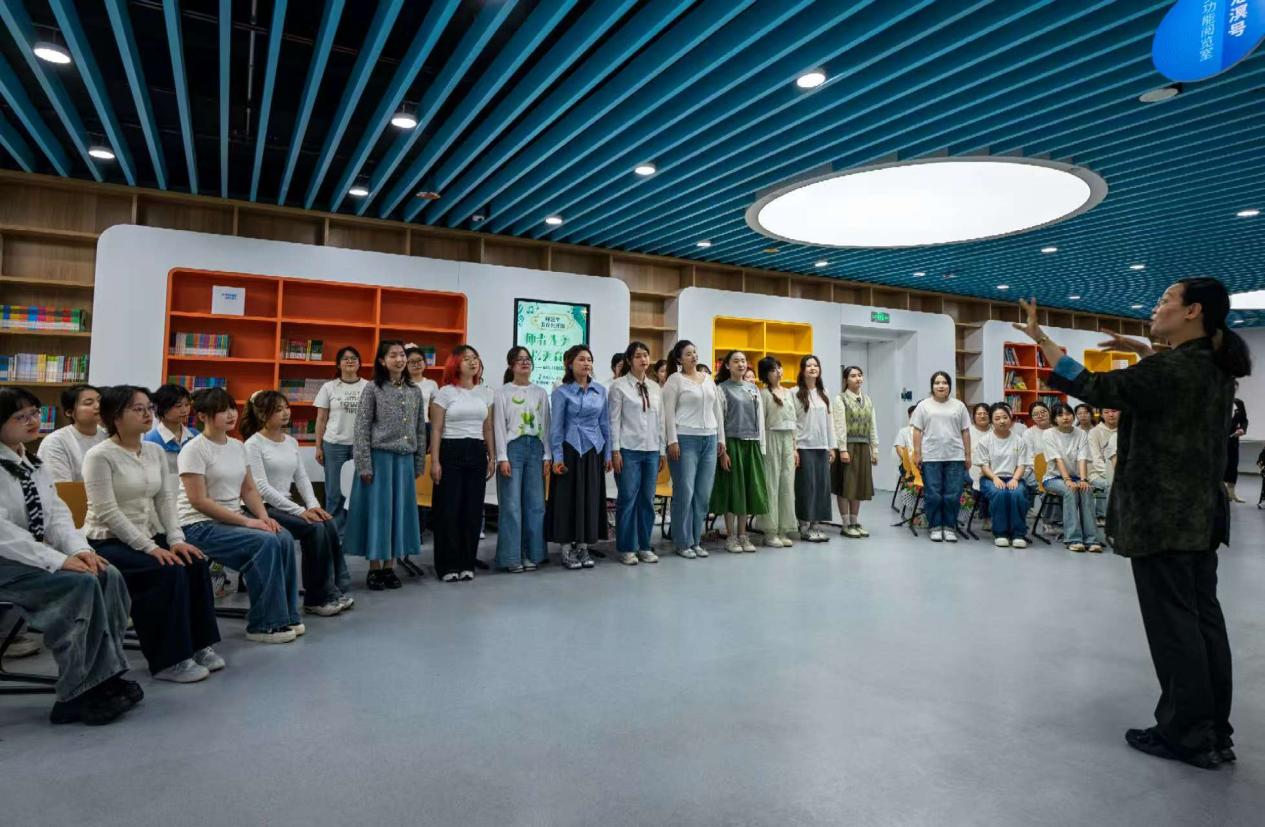 国家一流课程主持人、学院学前教育系教师党员韩恬恬副教授融合中国优秀传统文化与外国儿童音乐元素,以《师者先美,以美育人——唱给儿童最美的歌》为主题将美育与思政课搬进少儿图书馆,上了一堂生动的师范生美育公开课。作为“行走的课堂”生动实践,韩教授以合唱、舞蹈为载体,将“党建+专业”有效结合,把思政教育与美育感染融入学前师范生课堂。活动氛围热烈,获得现场人员一致好评。